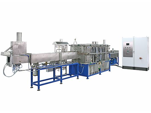 Continuous annealing and subsequent cooling of tungsten carbide for hard metal applications.